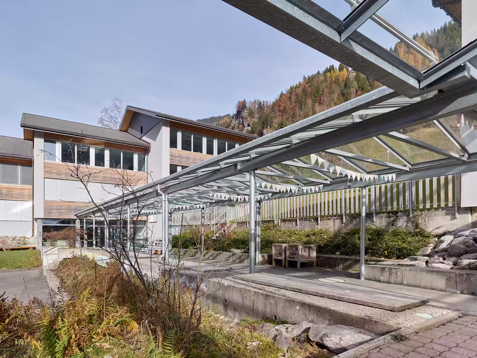 Überdachung Haupttreppe des Schulhauses in Lauterbrunnen